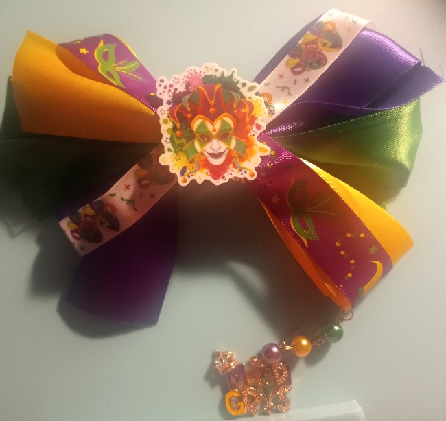 I'm a Louisiana native and I absolutely love Mardi Gras! I created Mardi Gras hair bows. This year, I only made one but next year, there will be more!