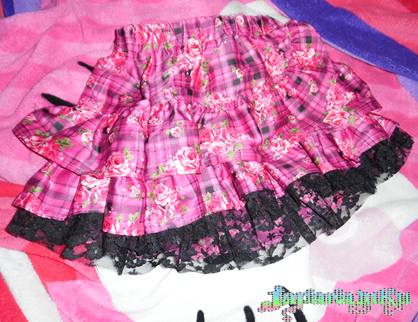 This is a second hand authentic Ma*rs gyaru mini skirt. Due to flash, it looks light but it's dark pink with pink flowers. It has black lace at the bottom. I've only won it once. It has stretchable waistband. Clean, comes from a smoke and pet free home. Order today!