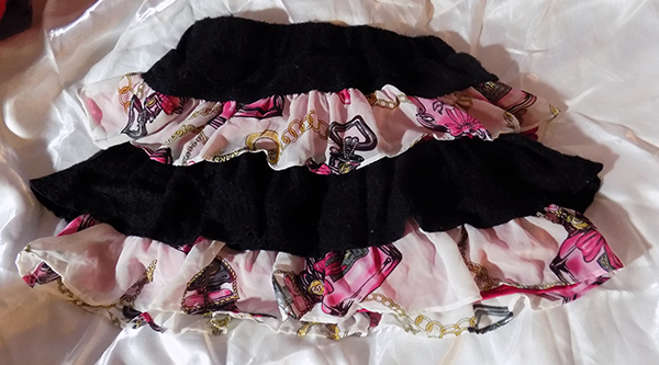 MA*RS MARS Gyaru Sugar Gloss brand skirt. Second hand but not worn by me. Black part is fleece. White with perfume-Eau De Toilette- print(my favorite print) Underneath is hot pink silk fabric.