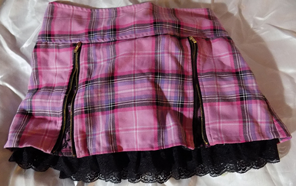 MA*RS MARS Gyaru Light Pink Zipper Bow Skirt. Second hand but not by me. Has zippers that you can use to open and close the front. When open, it has a beautiful floral black lace pattern. There's lace at the bottom and also at the back underneath the bow. The bow is detachable. The measurements are 14½ in width and 13 in length.