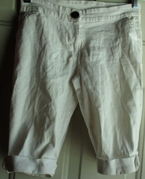 This is a used pair of Body Central white button shorts. On the leg parts, it is tucked and buttoned. It is a size small. It is 13 ¼ in width and 17 3/16 in length. Clean, comes from a smoke and pet free home. Order today!
