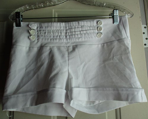 These are a pair of used Lindsey Michele white military shorts. On the side, I have hand sewn it together. They are a size medium. They are 15 inches in width and 10¾ in length. Clean, comes from a smoke and pet free home. Order today!