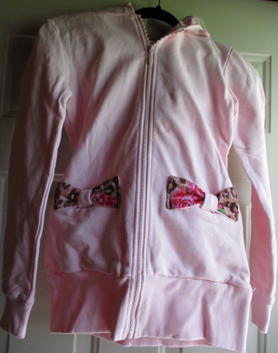 This is a second hand MA*RS pink faux fur leopard jacket. It has adorable rhinestones on the zipper and faux fur on the hood part. Included are cute brown leopard pink rose bows on the front.