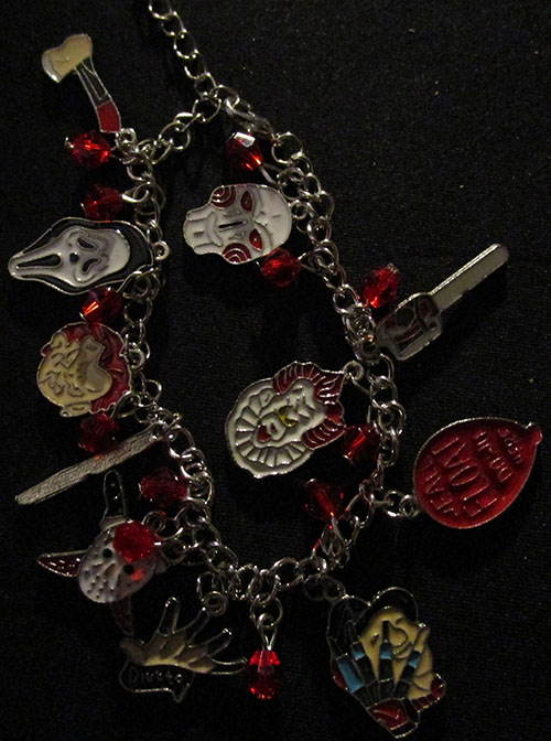 â¶ Features Ghostface, Chucky, Jason, Freddy, Michael Myers twice, and Pennywise. This bracelet has been reduced due to there being two Michael Myers on it.