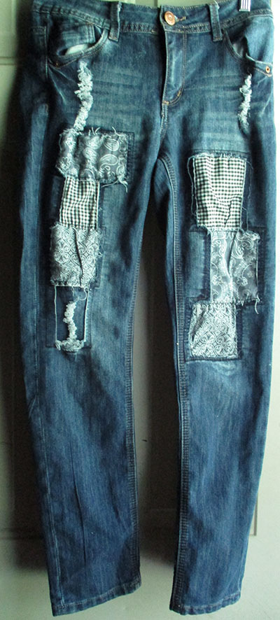 These are a pair of very worn Rampage Denim blue jeans! Very amazing and unique style to them! Measurements are 14 inches in width and 37¾ in length. Clean, comes from a smoke and pet free home. Order today!