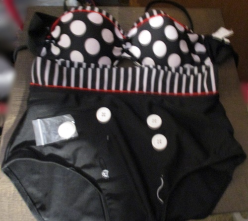 This is a bathing suit I never got around to actually wearing so I decided to sell it. It has been washed. I've had it for years and the buttons have fallen off(will be included with purchase). It is a size medium. Please be aware of this before you purchase. So if you're into vintage, retro style. You'll love this bikini!
