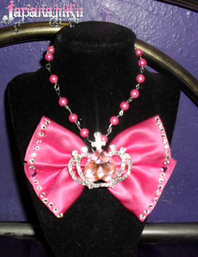 This is my latest gyaru style choker. It's hot pink with pink pearls, crystals and completed with a gorgeous rhinestone crown in the center. Lobster claw closing in the back. I have more on the way so order yours now! Wow the crowds with this hot new choker! Brand new, only tried on to model with it. Comes from a Non-smoking/pet environment~
