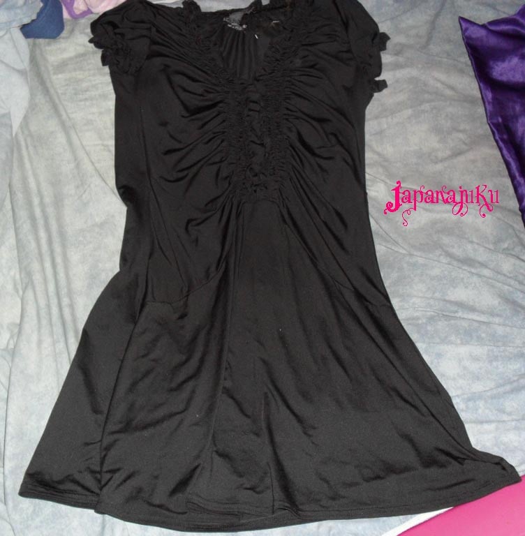 This is my cute black dress that I am putting up for sell. It is silky and knee length. It's a size medium(7-9). It has small belt loops but I no longer have the belt. Clean, comes from a pet and smoke free home. Order now!