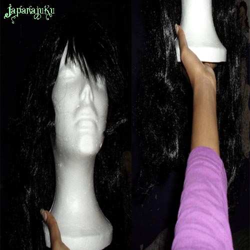 My beautiful, long black wig that I must sell because I donât wear it. I only tried it on, it needs to be brushed. I don't smoke or have pets. Hair net is included.